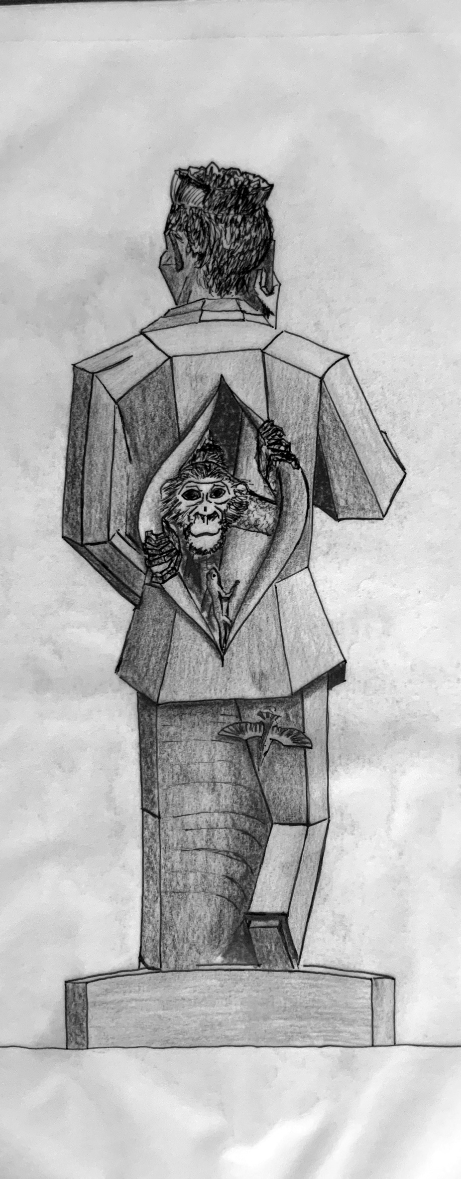 Deswegen war klar, dass ein Äffchen auf jeden Fall irgendwo hervorschauen muss. Der Rücken machte